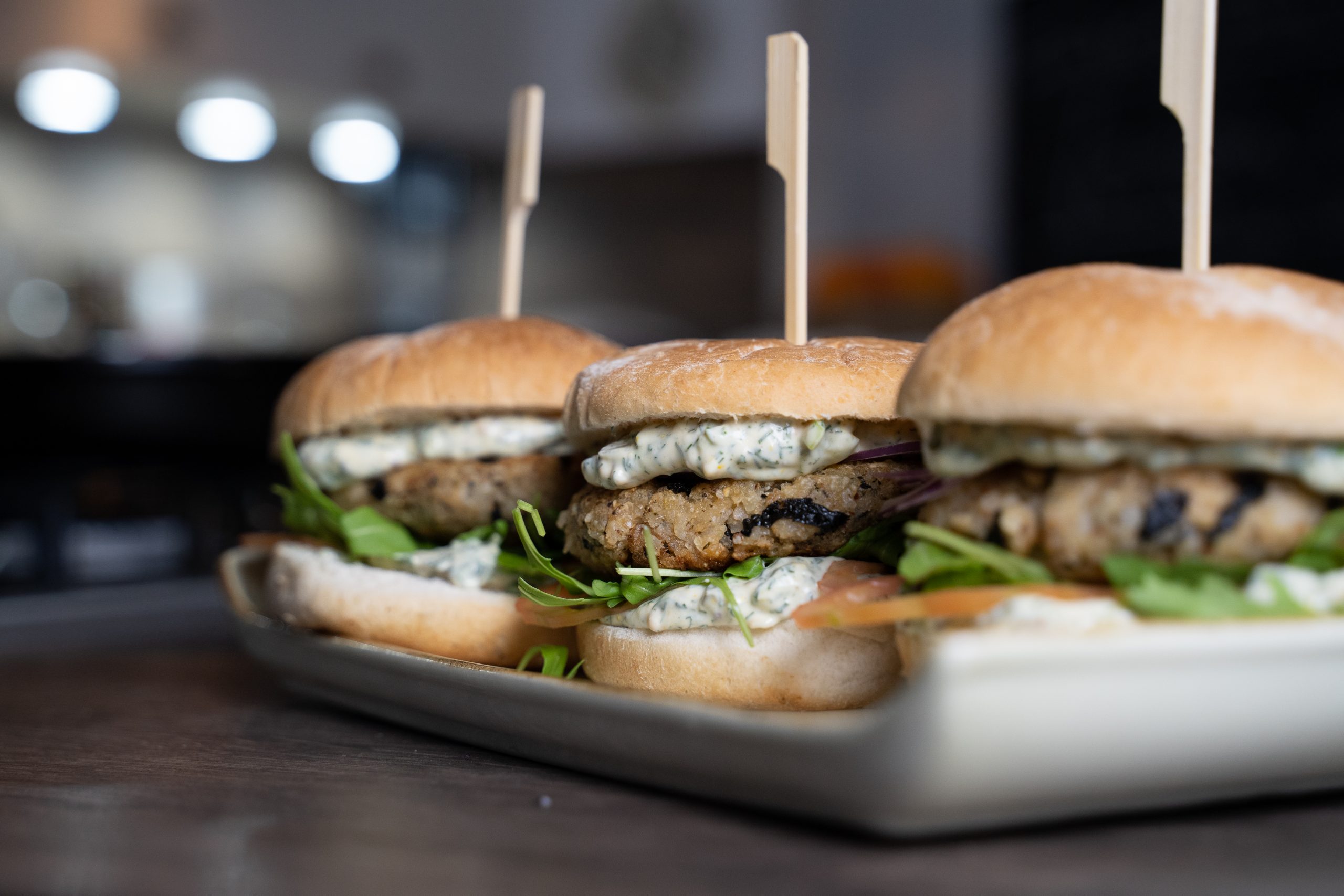 Den Teig verkneten und zu Patties formen. Hierfür ggf. noch etwas Paniermehl oder Wasser hinzugeben, je nach Konsistenz. Die Patties in reichlich Olivenöl von beiden Seiten anbraten, bis sie goldbraun sind.